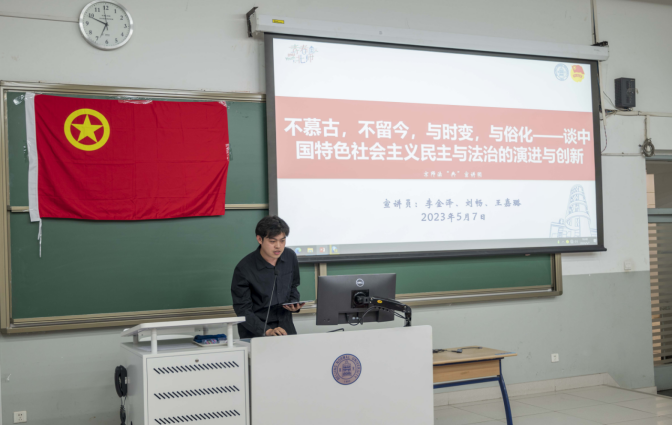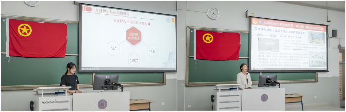 Li Jinze, Liu Chang and Wang Jialu, three members of the Legal Lecture Group, gave lectures themed "Do not stay in the same old rut, do not rest on laurels, change with the times, and develop with the customs - On the evolution and innovation of socialist democracy and rule of law with Chinese characteristics", elaborating from three dimensions: "Chinese wisdom accumulated over time: democratic theory in Party history", "China's answer to the question of democracy: the theory of whole-process people's democracy" and "China's solution for people's mastery of their own affairs: the vivid practice of whole-process people's democracy".