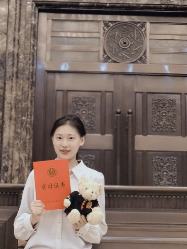Throughout the internship, I engaged in party construction, political theory study, and business learning initiatives; contributed to the drafting of judicial interpretations, conducted extensive research on foreign laws and regulations from over 30 countries, and authored pertinent papers; attended the 33rd session of the United Nations Commission on Crime Prevention and Criminal Justice (CCPCJ), taking charge of recording and post-meeting organizational tasks. Moreover, I immersed myself in trial practice, absorbed the case-handling perspectives of judges, and diligently managed comprehensive administrative duties. Over these four months, I approached every task with the mindset of "maximizing my efforts," actively learning from the front-line judges and role models around me. While participating in trial work, I reflected on how the legal theories from textbooks could be integrated and advanced within the intricate realm of judicial practice. Looking ahead, I am committed to working diligently, striving for excellence, and growing into a legal professional with unwavering ideals and beliefs, a strong sense of patriotism, and a robust legal foundation. I aim to contribute my strengths to the establishment of the rule of law in China's new era.