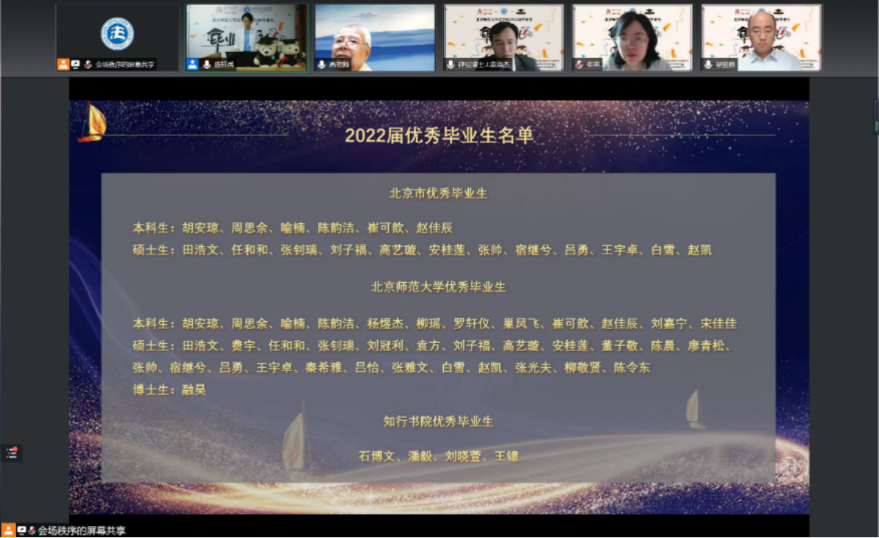 Teacher Guo Yating announced the list of excellent graduates who graduated in 2022 including the list of excellent graduates in Beijing, the list of excellent graduates from Beijing Normal University, and the list of excellent graduates from Zhixing College.