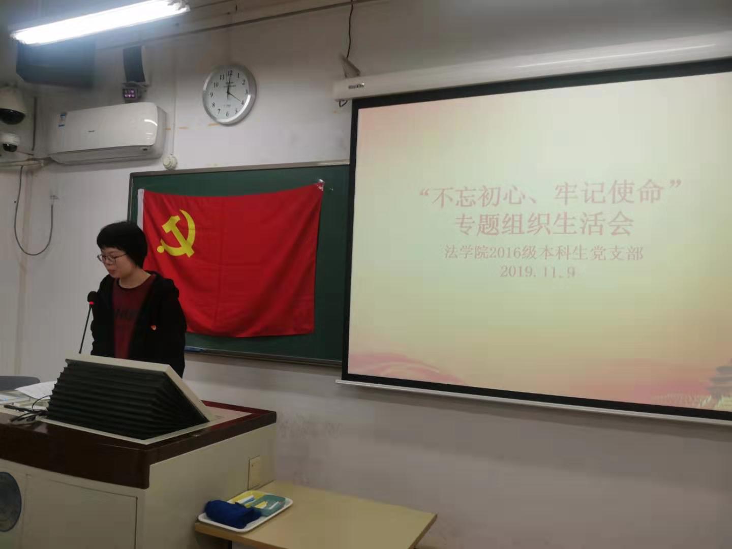 为认真贯彻落实“不忘初心,牢记使命”主题教育精神,2019年11月9日,嘟嘟成人网 2016级本科生党支部在教四109举办“不忘初心,牢记使命”专题组织生活会。党支部对接指导老师马丽亚老师、支部党员和入党积极分子参加了本次活动。会议由支部书记武彦君主持。