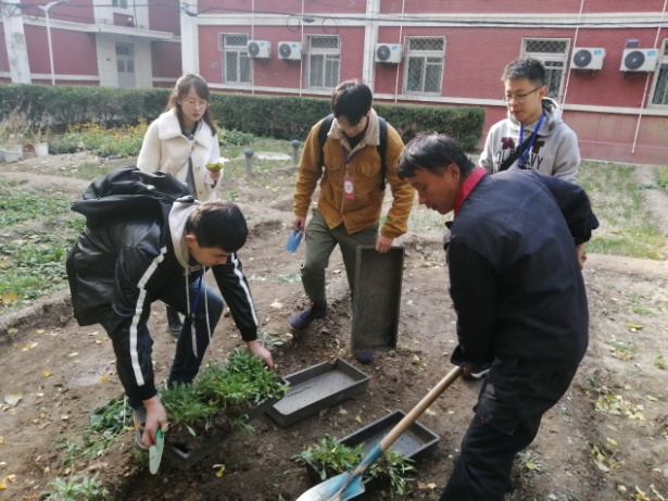 本次志愿服务的主要内容是帮助学校物业服务中心进行花卉幼苗培育和移栽工作。在后勤老师的带领下,同学们前往学十六西侧的花圃开始工作。经过老师和同学们近两个小时的共同努力,1000多盆金鸡菊幼苗伴随着同学们的欢声笑语被分盆移栽好,大家也真正体会到了园艺师傅的辛苦。