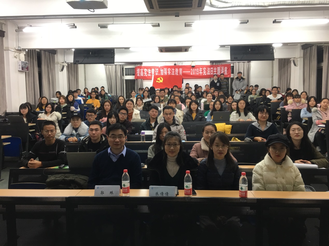 为深入贯彻习近平总书记关于加强宪法学习宣传教育的重要指示精神,贯彻落实党中央学习宪法的有关精神,2019年12月4日,嘟嘟成人网 邀请到研究宪法学与行政法学的郭殊老师于教四101教室为各院师生开展主题为《提高宪法意识,加强宪法教育》的讲座。参与本场讲座的师生有:党委学工部学生党建与思想政治教育处的朱倩倩老师、嘟嘟成人网 团委书记马丽亚老师以及各院学生。2019级法律硕士第二党支部组织党员和入党积极分子参加本次学习。