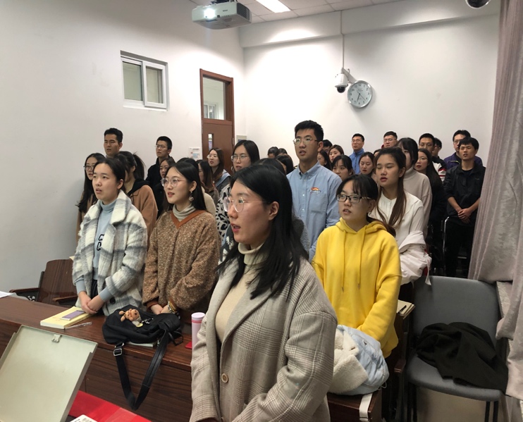 党的十九大决定,以县处级以上领导干部为重点,在全党开展“不忘初心、牢记使命”主题教育。今年是中华人民共和国成立70周年,也是我们党在全国执政第70个年头,党中央已经印发了关于在全党开展“不忘初心、牢记使命”主题教育的意见,在这个时刻开展这次主题教育活动,正当其时。活动伊始全体起立,共唱国际歌。