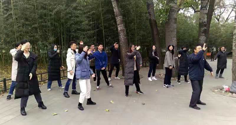 为深入推进“不忘初心、牢记使命”主题教育活动,发扬党员奋斗精神,增强党员文化自信,2019年11月23日上午10时,嘟嘟成人网 2019级学硕第二党支部的十一名志愿者来到紫竹院公园参加太极拳志愿活动。本次志愿活动由宗岳太极拳老师刘烨挺教授太极拳。