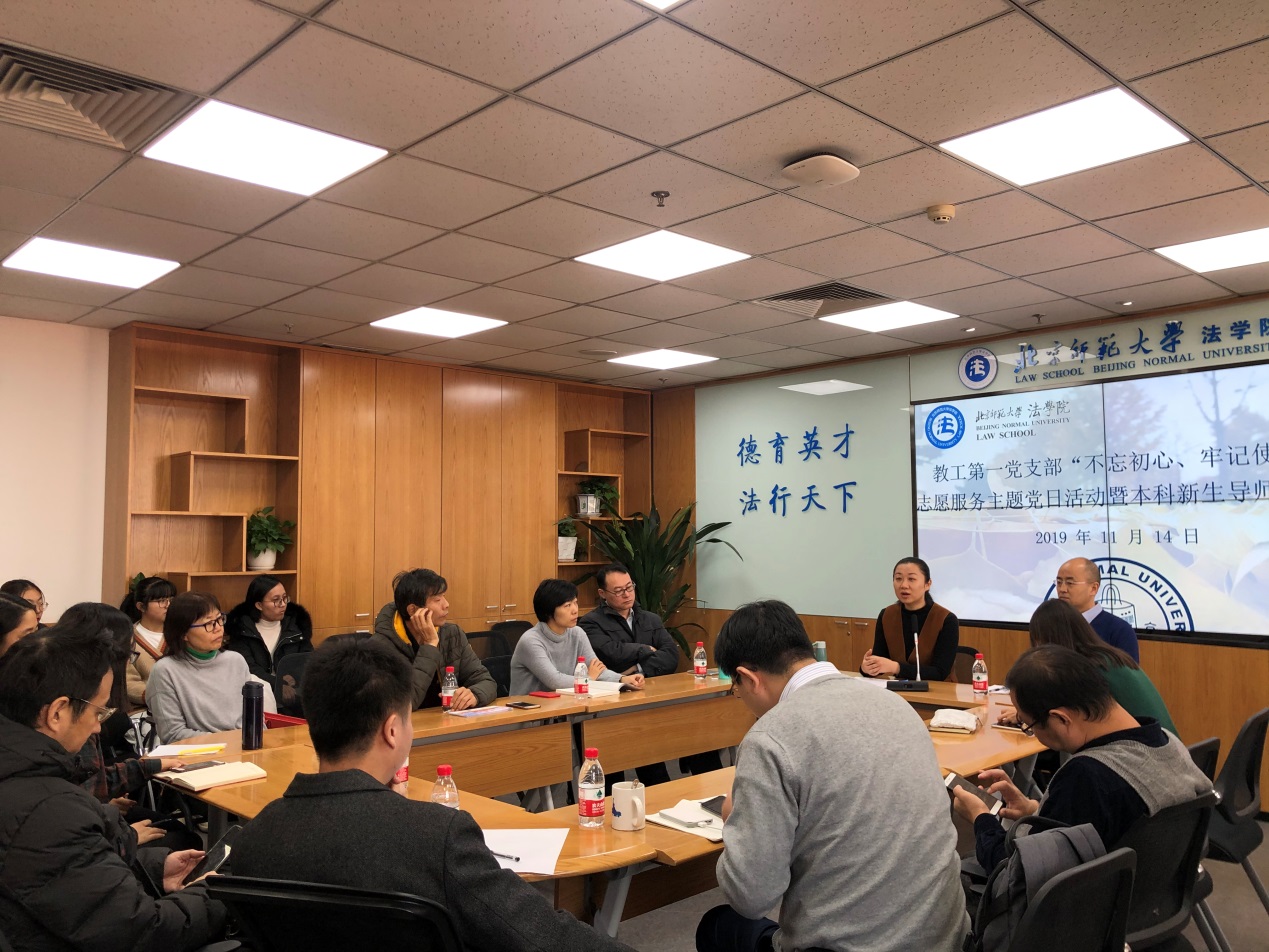 2019年11月14日中午,嘟嘟成人网 教工第一党支部“不忘初心、牢记使命”志愿服务主题党日活动暨本科新生导师交流会在后主楼1922会议室顺利举行。教工第一党支部的教工党员和来自2019级瀚德实验班、卓越实验班的近20名本科新生共同参加了本次交流会,会议由支部书记唐璨老师主持。