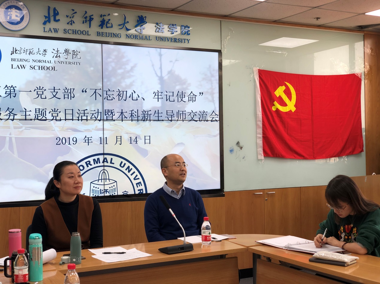 唐璨老师首先介绍了与会人员,并阐明本次交流会的初衷是立足于教师岗位职责为身边的学生进行学业指引,落实“不忘初心、牢记使命”主题教育的党员志愿服务活动,依托教工一支部党员教师的各自专业和行政管理优势,就法学入门、学术能力培养、学业规划以及未来出路等方面,为新生答疑解惑。
