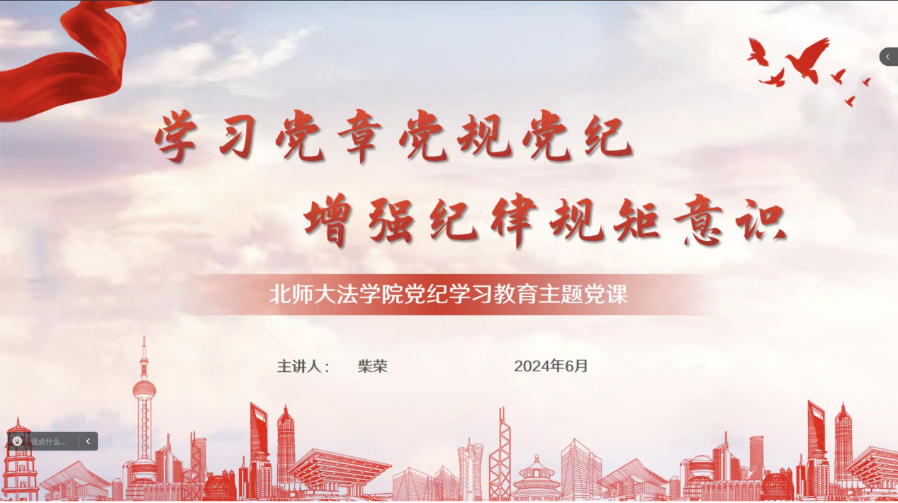 随后,柴荣教授通过典型违纪案例分享的形式,具体介绍了针对违反政治纪律行为、违反组织纪律的行为、违反廉洁纪律的行为、违反群众纪律的行为、违反工作纪律的行为、违反生活纪律的行为等重点行为的处分方式。柴荣教授强调,作为一名党员需要严格要求自身,要深刻领悟习近平总书记关于党的自我革命的重要思想,关于健全全面从严治党体系、全面加强党的纪律建设重要论述,更加深刻领悟“两个确立”的决定性意义,更加坚决做到“两个维护”。