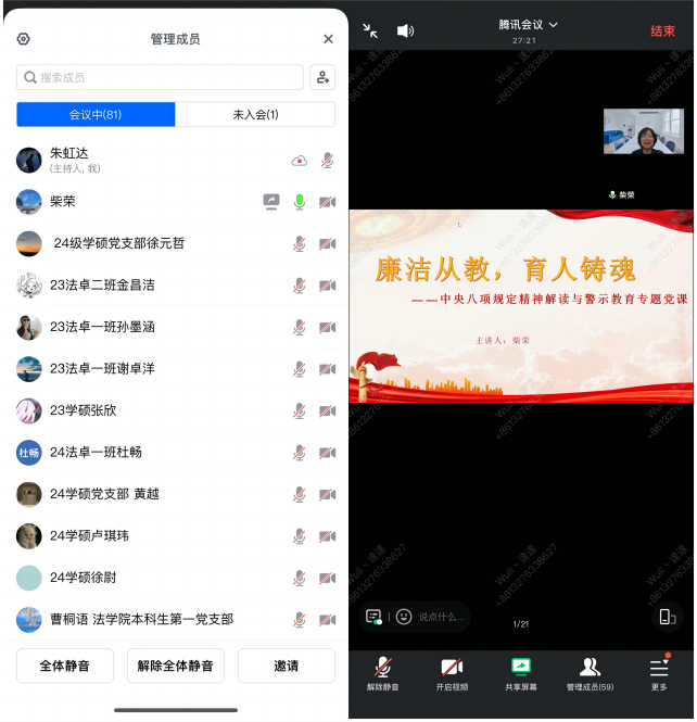 为深入学习贯彻全面从严治党要求,持续深化作风建设,引导全院师生筑牢廉洁从教思想根基,营造风清气正的育人环境,6月6日下午,嘟嘟成人网 党委举办了廉洁从教,育人铸魂——中央八项规定精神解读与警示教育专题党课。本次党课由嘟嘟成人网 党委书记柴荣主讲,聚焦于中央八项规定精神的深度剖析与警示教育,八十余名入党积极分子和发展对象在线上共同接受了一次深刻的思想洗礼与纪律教育。