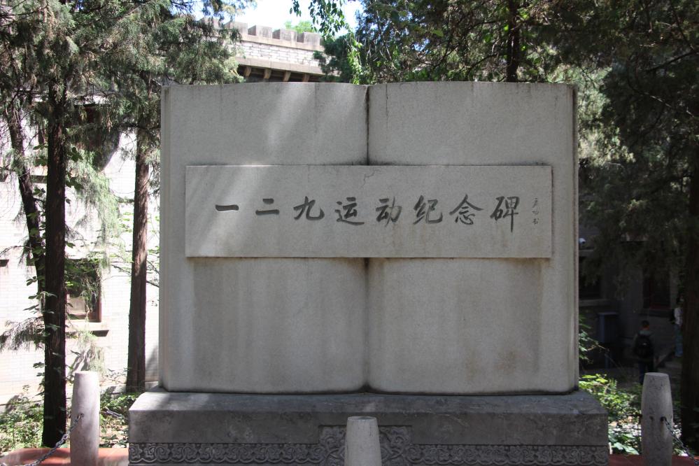 从主楼左侧进入小花园,坡上有启功先生题的“一二·九”运动纪念碑,在1935年12月北平青年的两次爱国大游行中,辅仁大学的学生都是积极的发动者和参加者,如辅仁大学化学系学生文立征,1937年“七七”事变后,北平沦陷,文立征南下山东,成了抗日游击队的一名战士。1945年2月22日深夜,因叛徒告密,他遭到了敌伪武装的突然袭击,不幸壮烈牺牲,年仅34岁。