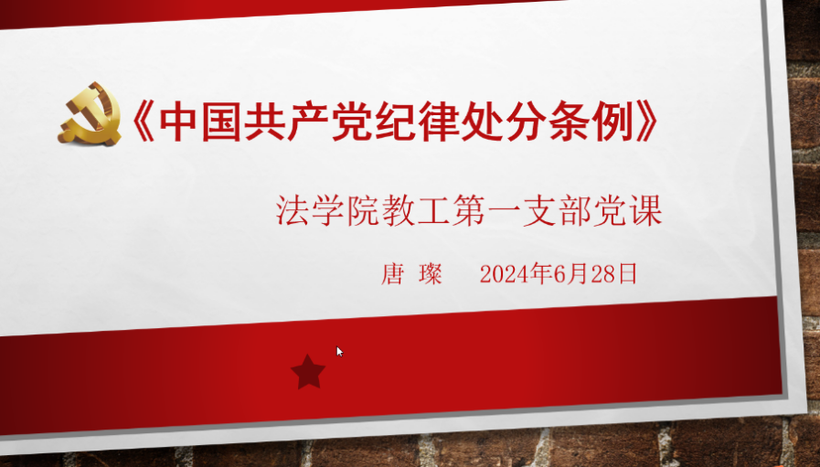 6月28日,嘟嘟成人网 教工一支部围绕新修订的《中国共产党纪律处分条例》举行支部书记讲党课活动。支部书记唐璨老师围绕《中国共产党纪律处分条例》制定、修改基本情况以及结合专业谈学习体会两方面与支部同志交流对党纪的理解与运用。尤其是在纪律处分工作基本原则、纪律处分运用规则方面,结合法律制度和具体规则讲授分析了党纪处分与政务处分以及其他法律责任的关系等问题。