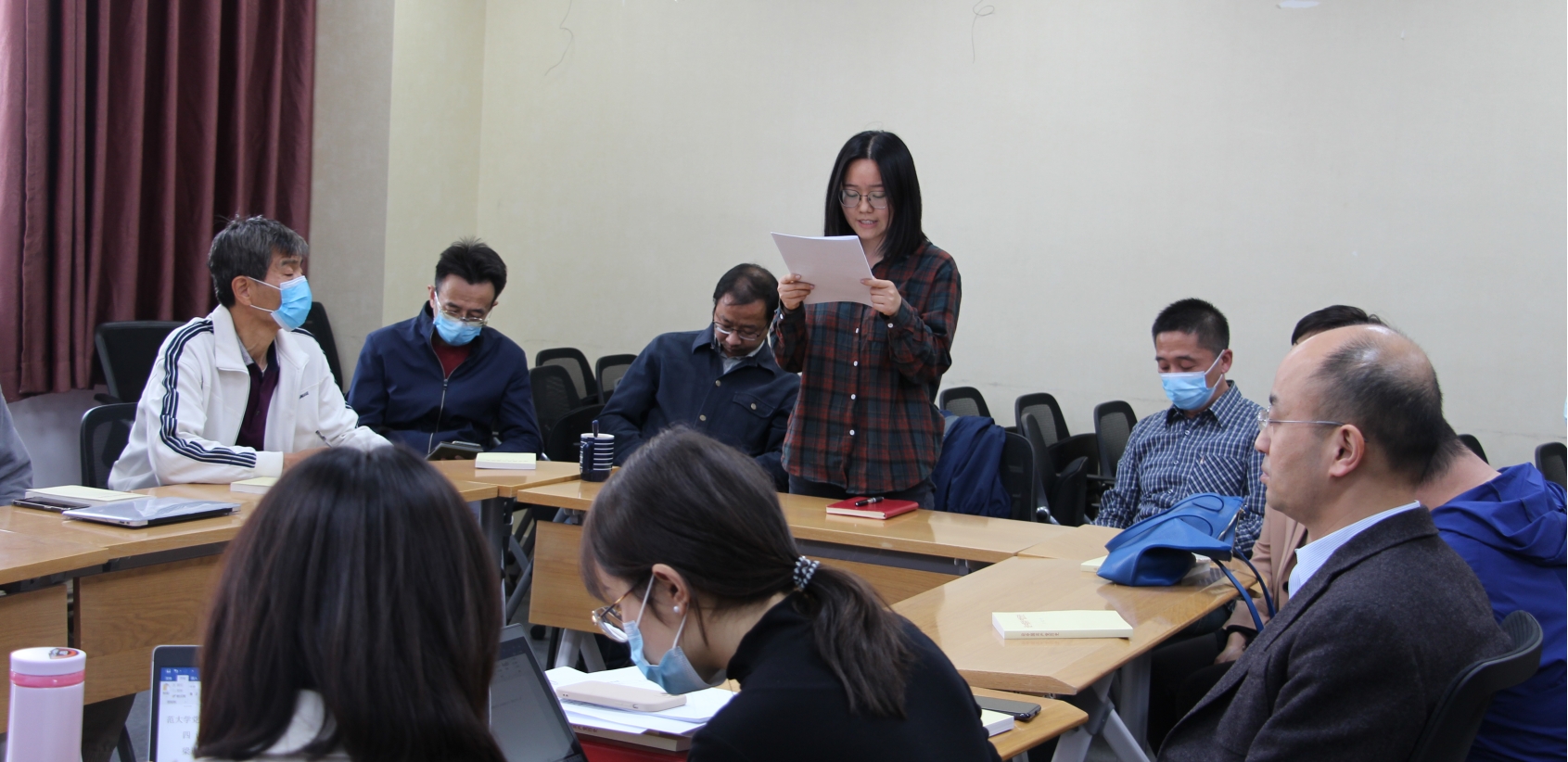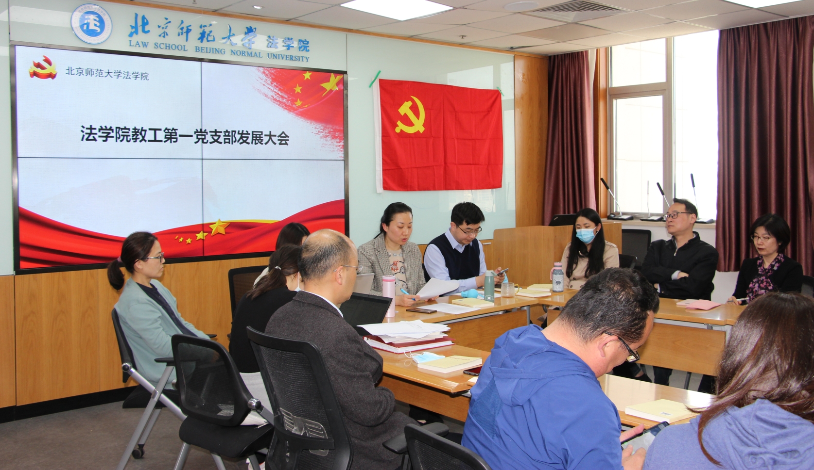 2021年4月30日下午2点,嘟嘟成人网 教工第一党支部在后主楼1922会议室召开党员发展大会。唐璨老师主持会议。组织委员郭殊老师清点了到会人数,大会应到党员22人,实到19人,会议有效。