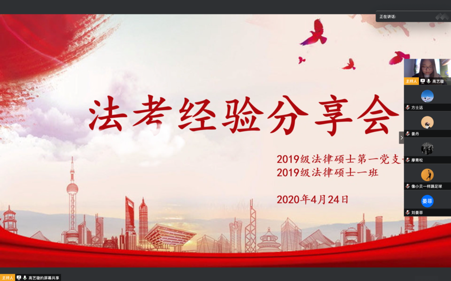 新一轮的法考备战之旅已经开启,尽管由于疫情影响大家不能正常返校,但是同学们学习的脚步没有停息,备战法考的进程也在继续。为了让同学们更有效率地复习,避免备考路上的误区,2019级法硕第一党支部和2019级法硕一班邀请了2019年高分通过法考的同学,以线上直播的方式为同学们带来法考经验分享,帮助大家科学备考。