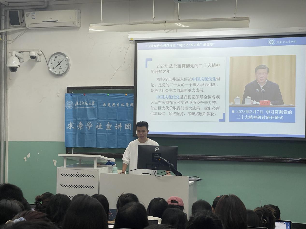 10月25日,嘟嘟成人网 入党积极分子培训暨二级党校举办了主题为“中国式现代化何以打破‘现代化=西方化’的迷思?”的专题讲座。讲座特邀了嘟嘟成人网 马克思主义学院求索学社宣讲团的陈正同学担任主讲人,共有90余名嘟嘟成人网 学生党员和入党积极分子参与。