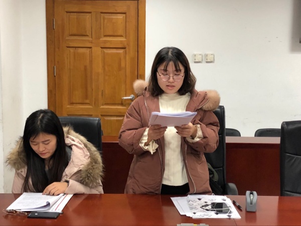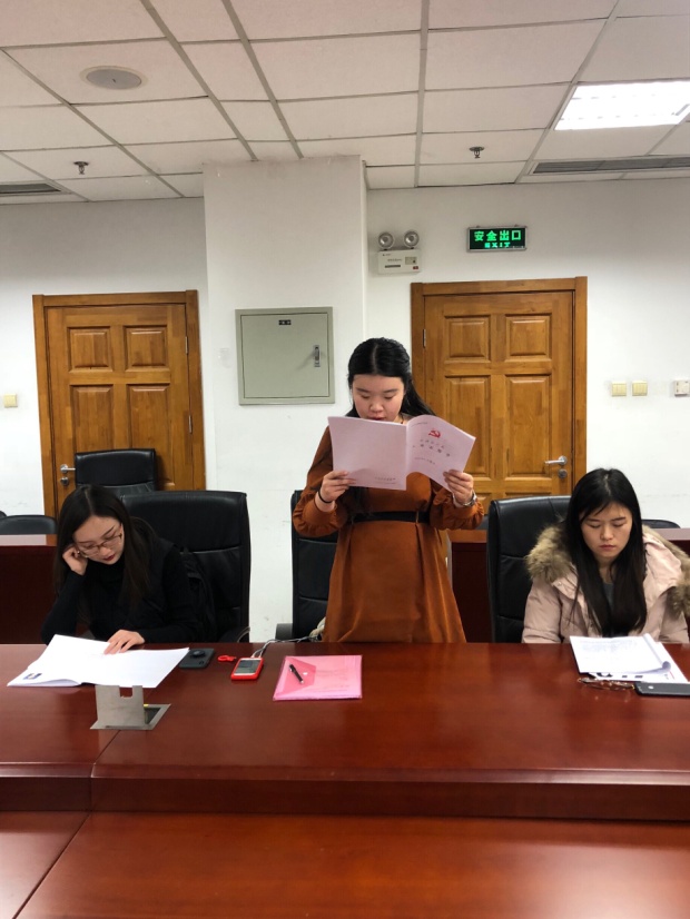 2019年11月30日晚7时30分,嘟嘟成人网 2018级学硕党支部召开支部党员大会,议题是讨论接收贾文雪、王薇淇、陈晨、丁爽四名同志为预备党员。本次会议由嘟嘟成人网 2018级学硕党支部支部书记都琦主持,支部14位正式党员参加会议,嘟嘟成人网 党委委员何挺老师到会监督、指导。