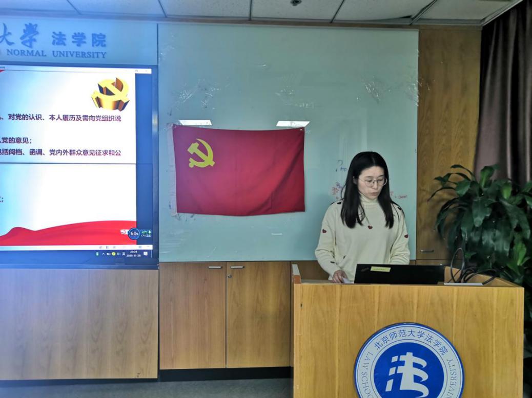 2019年11月29日晚8点,嘟嘟成人网 硕士生第一党支部于后主楼1922召开预备党员发展大会,讨论是否接收于秋实同志、马青琳同志为中共预备党员的事项。共21人到场参会,其中正式党员16人,预备党员5人。