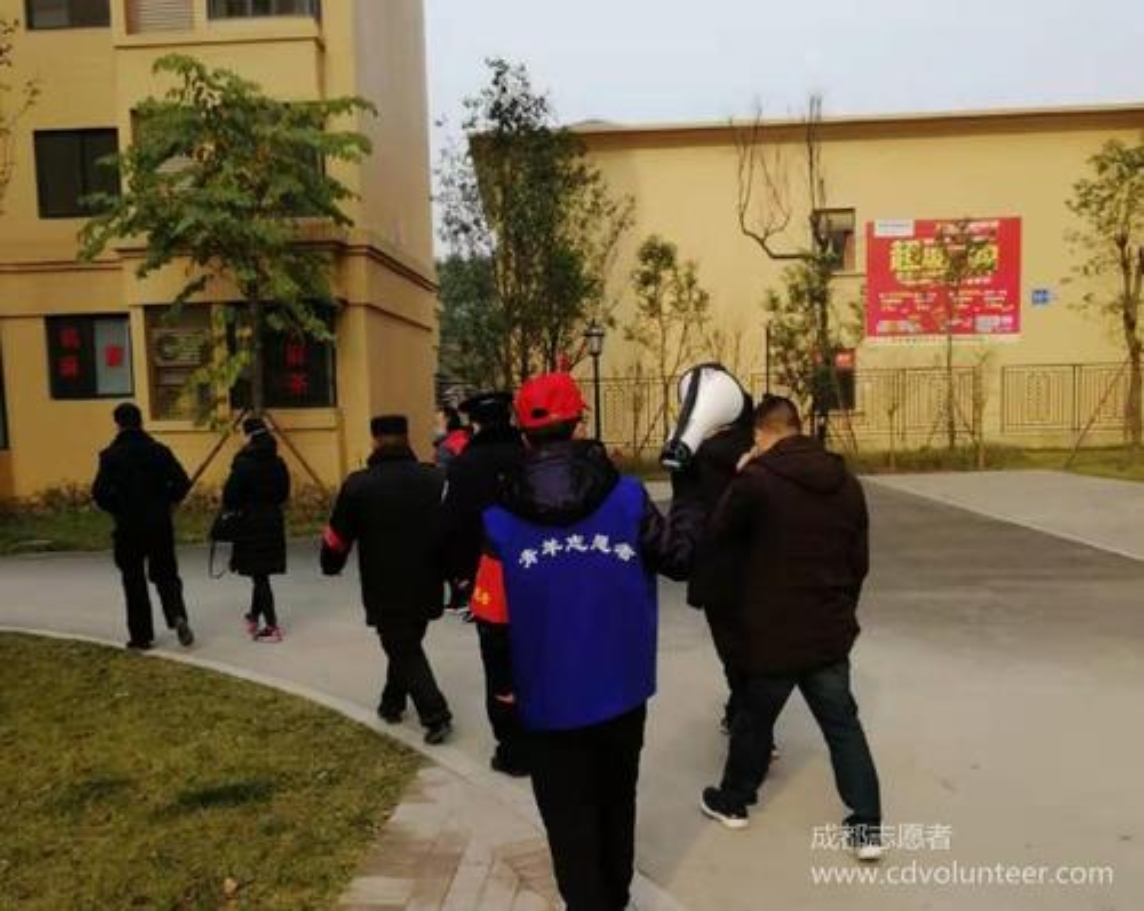 疫情期间,成都某社区,志愿者组织排查。(图片来源于网络)