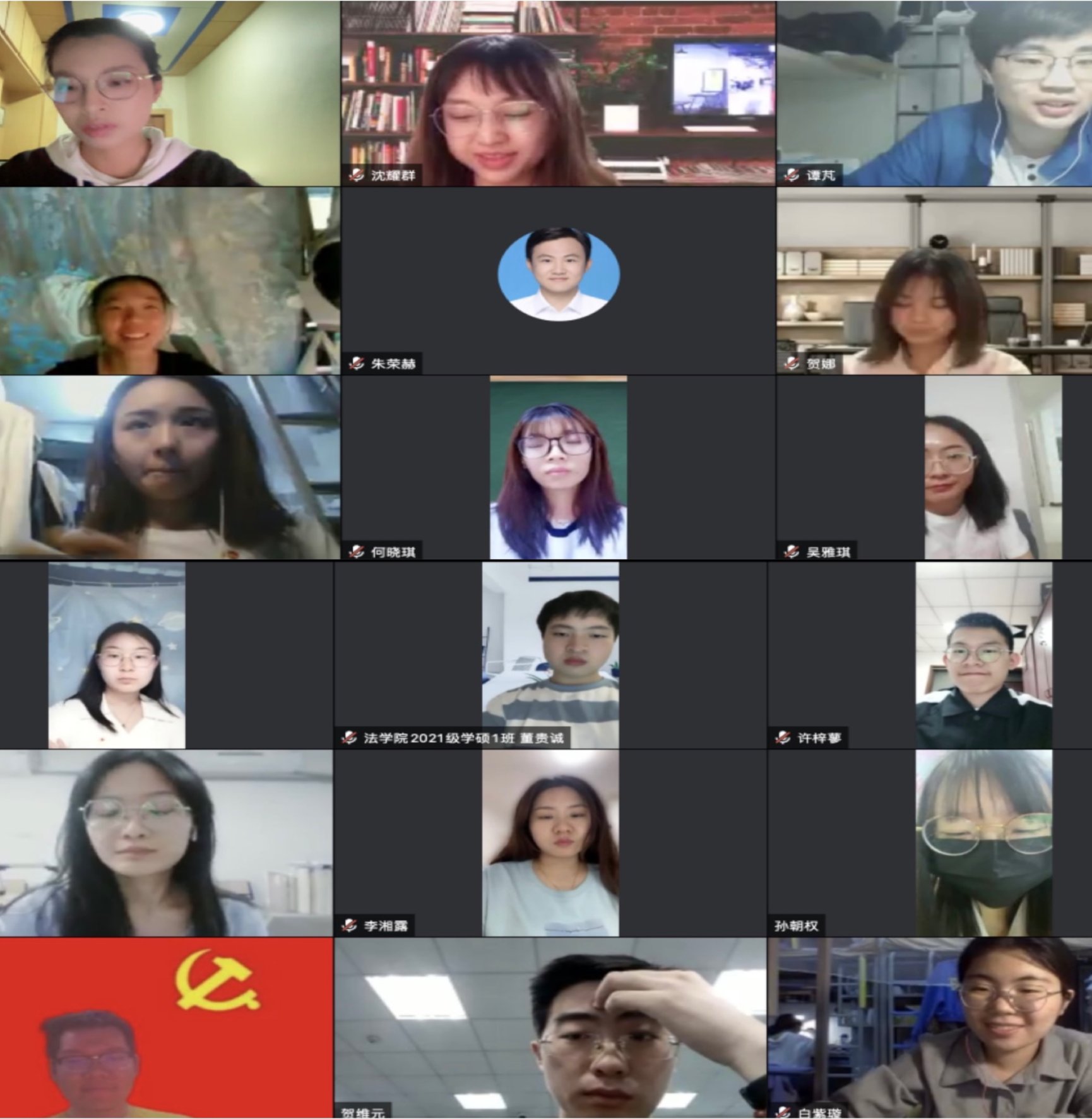 2021年4月24日20:00,嘟嘟成人网 2021级学硕二班、学硕一班联合于线上举办了“京师法‘典’青春宣讲”活动。本次活动面向21级学硕全体成员,我班班级、团支部、党支部积极共建,共同组织了本次活动,共计50人参与本次活动。会议内容分为三项,第一项是由博士生师兄为学硕二班、学硕一班的全体同学作“法学硕士生论文写作与发表点滴心得分享”。第二项则由张心妍同学为大家分享其作为冬奥会志愿者的经历。第三项由钱坤同学为大家分享百年团史。