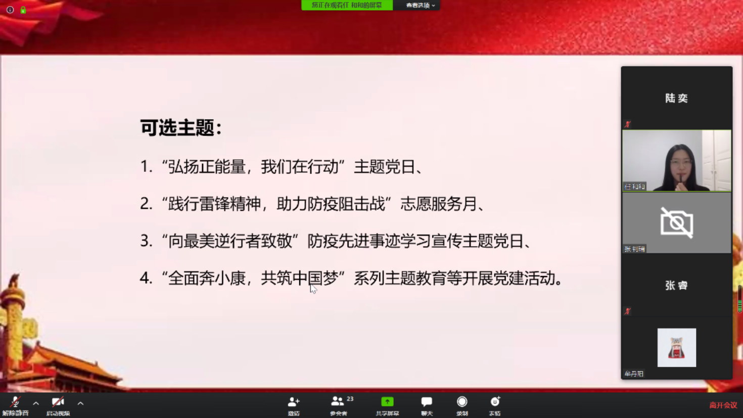 在全国上下抗击新冠肺炎的特殊时期,为深入学习习总书记关于疫情防控的重要指示精神,增强广大党员的理想信念,充分发挥党员先锋模范作用,嘟嘟成人网 嘟嘟成人网 2019级学硕第二党支部于2020年3月20日晚7点召开了线上党支部大会。会议由支部书记任和和主持,支部全体党员和部分积极分子参加。