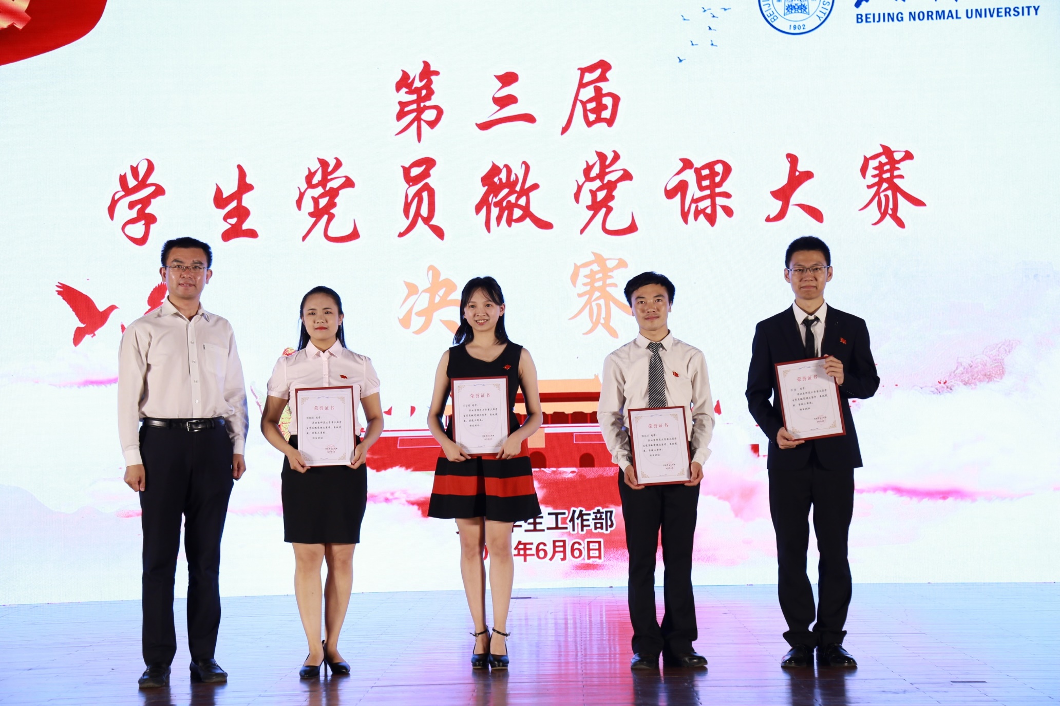2018年6月6日下午,嘟嘟成人网 第三届学生党员微党课决赛在学生活动中心落下帷幕。我院2015级本科生党支部书记、2015级本科生李勇同学在经过初赛、复赛的激烈角逐之后,顺利晋级决赛,并获得了比赛三等奖和“最佳人气奖”,为嘟嘟成人网 争得荣誉。本次比赛由我校本科生工作处主办,主要围绕党的十九大精神、学校第十三次党代会精神、习近平新时代中国特色社会主义思想等内容开展。本次大赛于2017年12月启动,在初赛的基础上,于2018年5月8日举办复赛,经过教师评审,共有来自各部、院系的9名选手进入决赛。