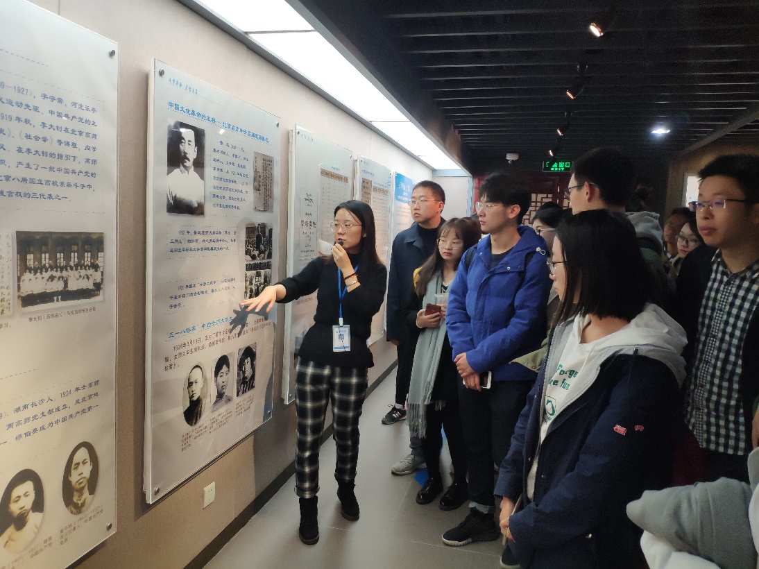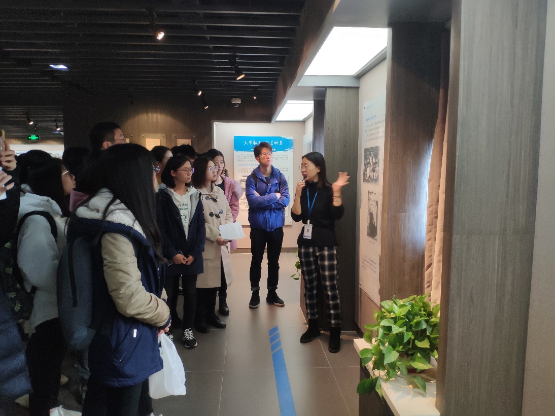 在讲解员的带领下,同学们从师大现今的沙盘图看起,了解各个校区规模庞大的建筑群。接下来,同学们沿着时间轴,从清代,从京师大学堂开始,揭开师大的历史面纱,深入了解师大在漫长而曲折的历史中,不畏环境艰苦地成长壮大。