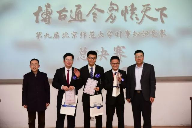 2018年4月15日,“博古通今,胸怀天下”第九届北京师范大学时事知识竞赛总决赛在教九502落下帷幕。经过激烈的世界之旅、人物今昔、人物荟萃、人物探微、今日亚洲等环节,嘟嘟成人网 代表队最终凭借扎实的基础和出色的发挥,总成绩名列第二,获得了二等奖的优异成绩,嘟嘟成人网 获得“最佳组织奖”,2016级本科生马宁凭借优异的表现获得“最佳风采奖”。