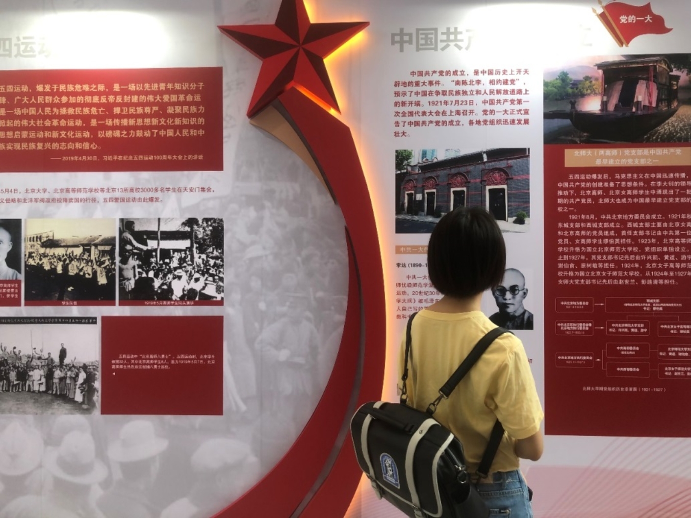 李佩珈:中国共产党的成立,是中国历史上开天辟地的重大事件。在李大钊的领导和推动下,北京高师,北京女高师学生中涌现出了一批早期的共产党员,北师大成为中国最早建立党支部的高校之一。党历经百年风雨开启历史新征程,作为北师大的一名预备党员,要永远铭记党的初心和使命。历史川流不息,精神代代相传!