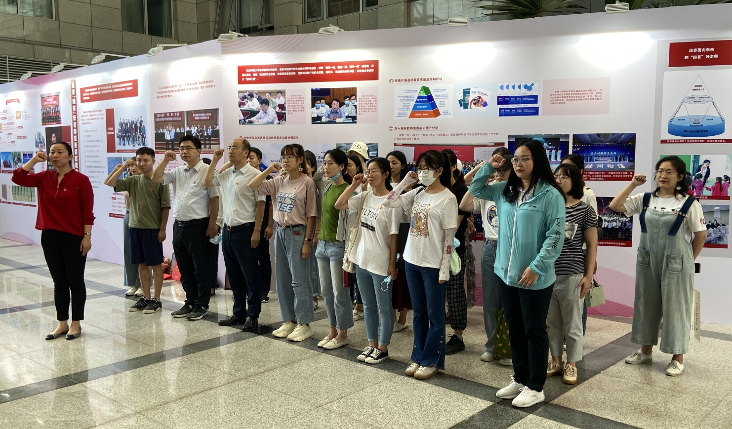 随后,唐璨老师带领着全体师生党员一起重温了入党誓词,铿锵的誓词、高举的右拳,都在诉说着共产党员们激动、振奋与骄傲的心情。