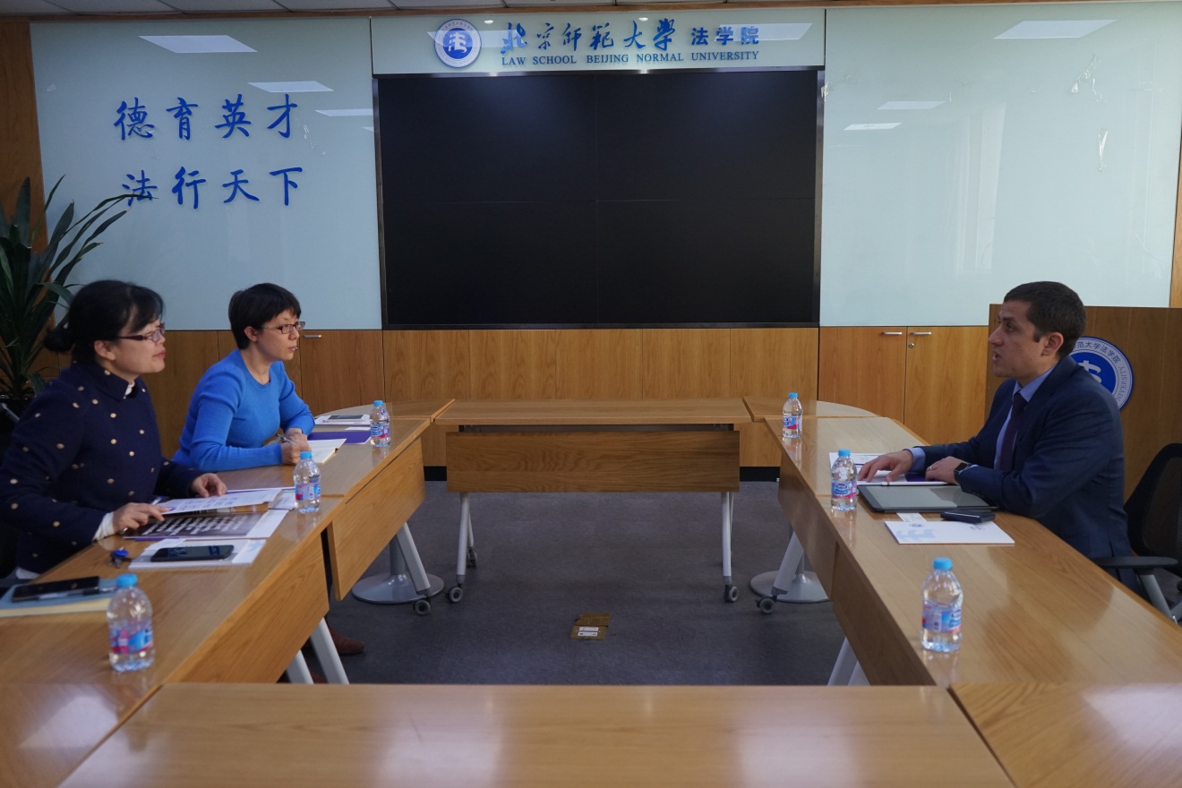 柴荣副院长代表嘟嘟成人网 对Even M.Goldberg教授的到来表示欢迎,Evan教授也对北师大嘟嘟成人网 的热情接待表示了感谢并介绍了美国西北大学嘟嘟成人网 的情况及Master of Science in Law项目的内容,希望北师大嘟嘟成人网 能有优秀的拥有理工科背景的学生对该项目感兴趣。柴荣副院长及秦晓静老师也向Evan教授简要介绍了嘟嘟成人网 的学生情况及国际交流情况,并表示希望能与西北大学嘟嘟成人网 在学生交流及教师交流等领域开展深入的合作,双方就此展开了详细的讨论。