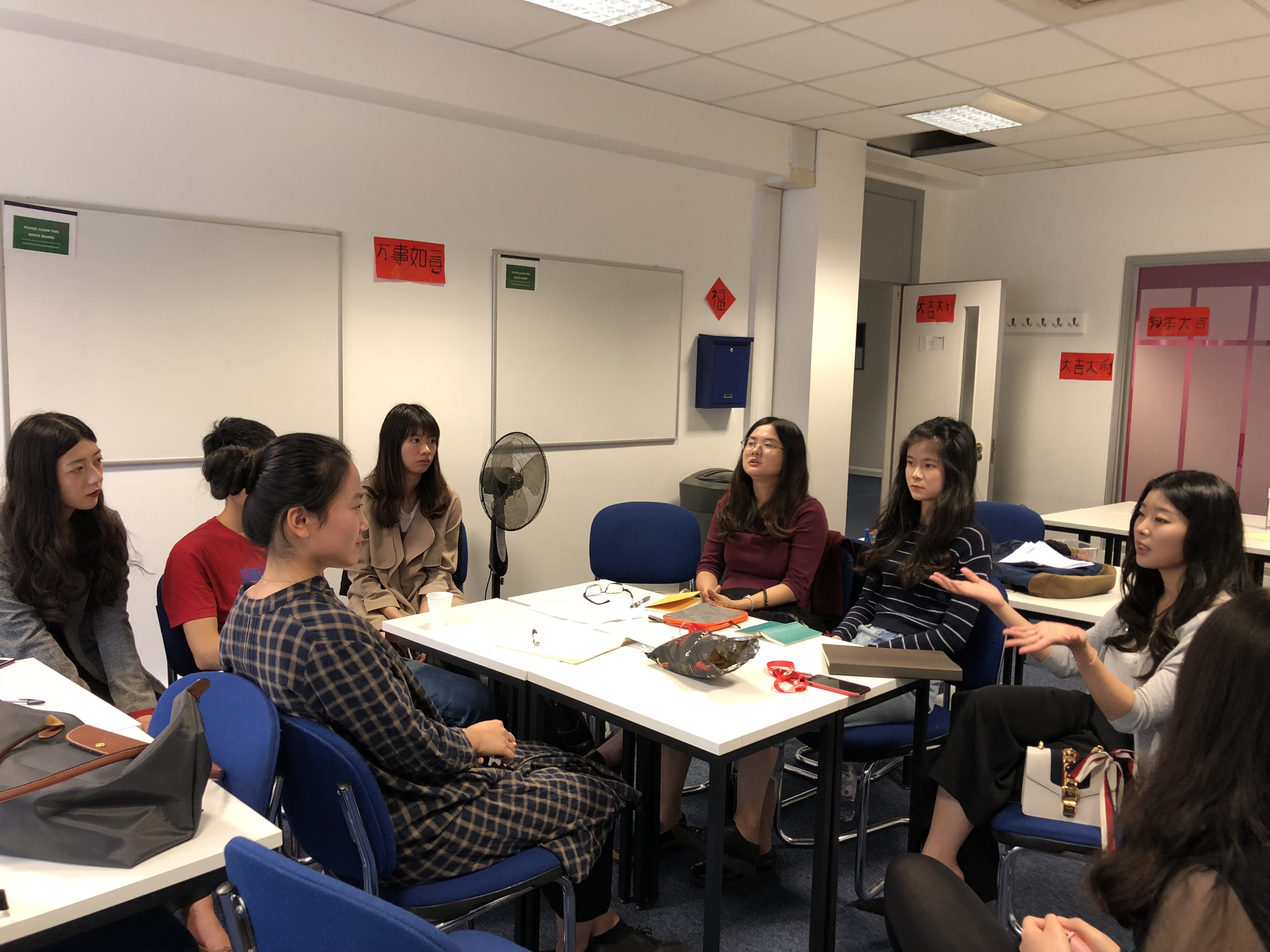 在项目进行期间,在伦敦大学学院(University College London)攻读硕士学位的嘟嘟成人网 3名同学来到bloomsbury校区与参加项目的同学就研究生申请条件、课程的设置与选择,学习方法、毕业就业率、学校生活信息等问题进行了热烈交流,并与同学们分享了留学过程的经验与收获。