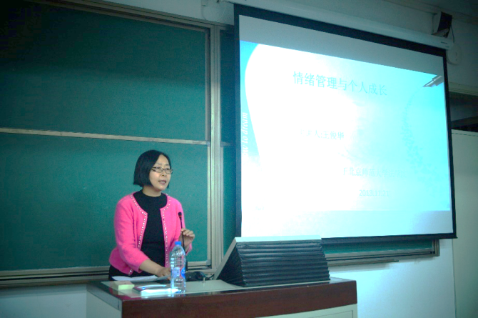 生活指导室于教四101成功举办了“情绪管理与个人成长”心理健康主题讲座。主讲人为中国青年政治学院王俊华副教授,她是国家二级心理咨询师、萨提亚模式家庭治疗师,《婚姻与家庭》、山东人民广播电台等平台专家,著有《那一刻,我看见了自己——萨提亚模式心灵成长手记》一书。我院党总支副书记原茵老师出席并担任本次讲座的主持人,我院祁书峰老师和马丽亚老师也出席参加了本次讲座。