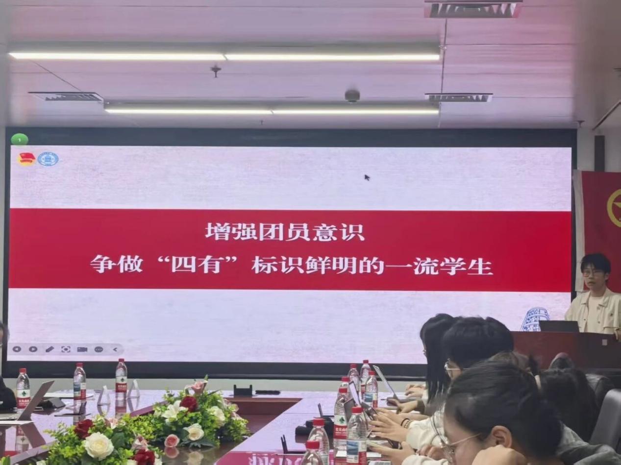 团委副书记朱虹达带领同学们回顾了共青团的光荣历史与初心使命,结合“五四八勇士”、教师节确立历程及黄文秀同志先进事迹等北师大红色基因,强调共青团作为党的助手和后备军的重要角色。他的发言围绕“增强团员意识,争做‘四有’标识鲜明的一流学生”展开,号召全体团员坚定理想信念、严守组织纪律、勇担时代责任,在推进强国建设、民族复兴伟业中展现青春作为、彰显青春风采,奋力书写为中国式现代化挺膺担当的青春篇章。