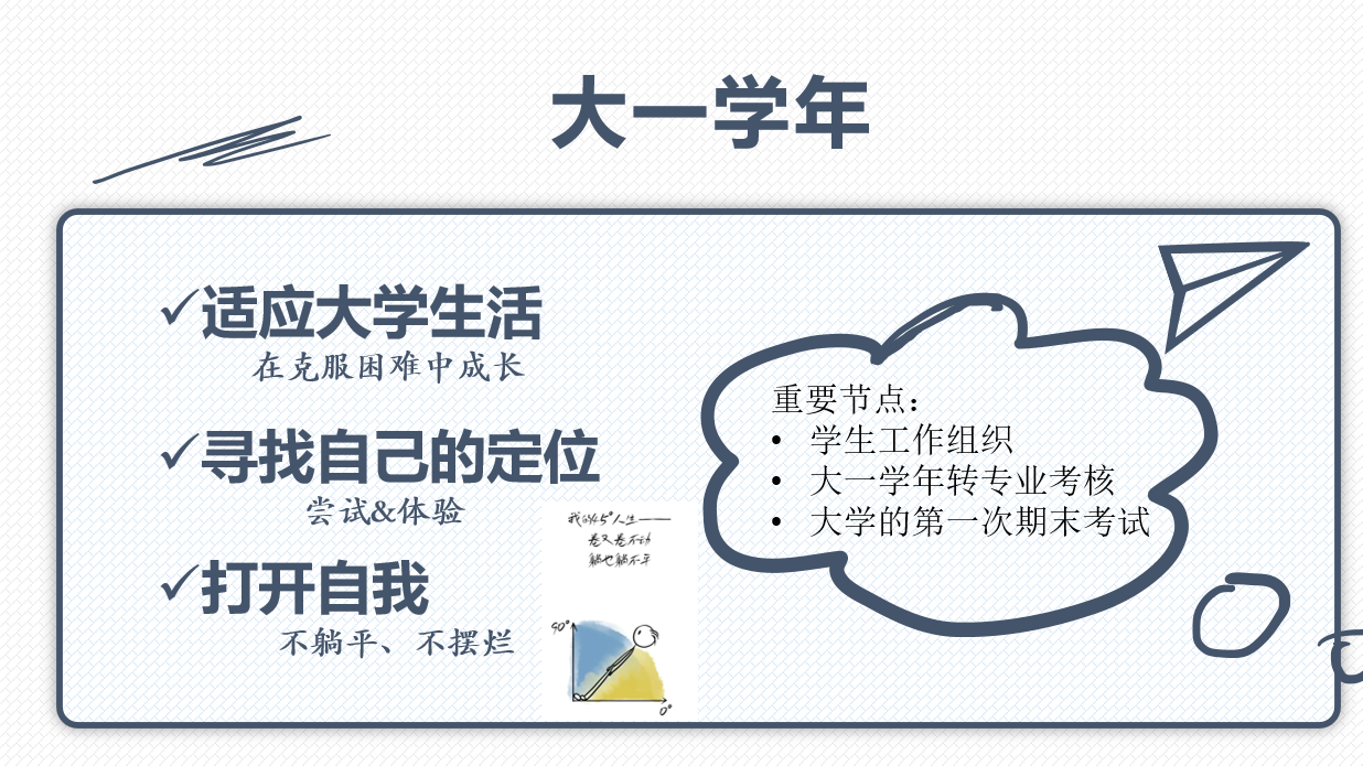 望今朝师兄主要就本科学习的经验方法进行分享。望今朝师兄介绍了大学四年的重要节点与每一学年的主要任务,分享了自己的专业课体系化学习方法,并向大一同学们提出了三个方面的建议:适应大学生活、寻找自身定位、打开自我拒绝躺平。最后,师兄告诉同学们要“珍惜当下,主动把握机会”,将北师大嘟嘟成人网 作为平台,为自己自信谦逊地争取光明的未来。