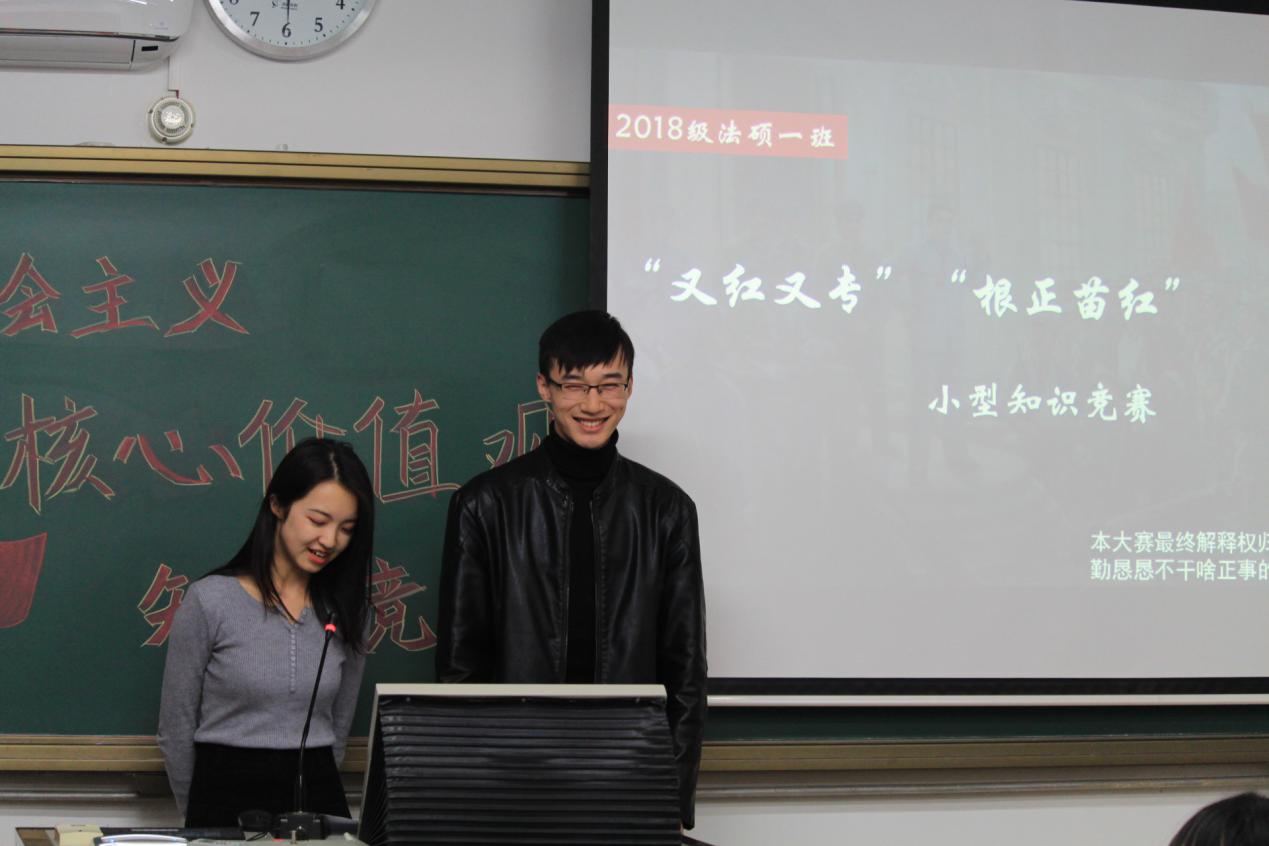 回到学校之后,法硕一班在班委的组织下,又于2018年11月13日在教二楼204开展了一次社会主义核心价值观知识竞赛。