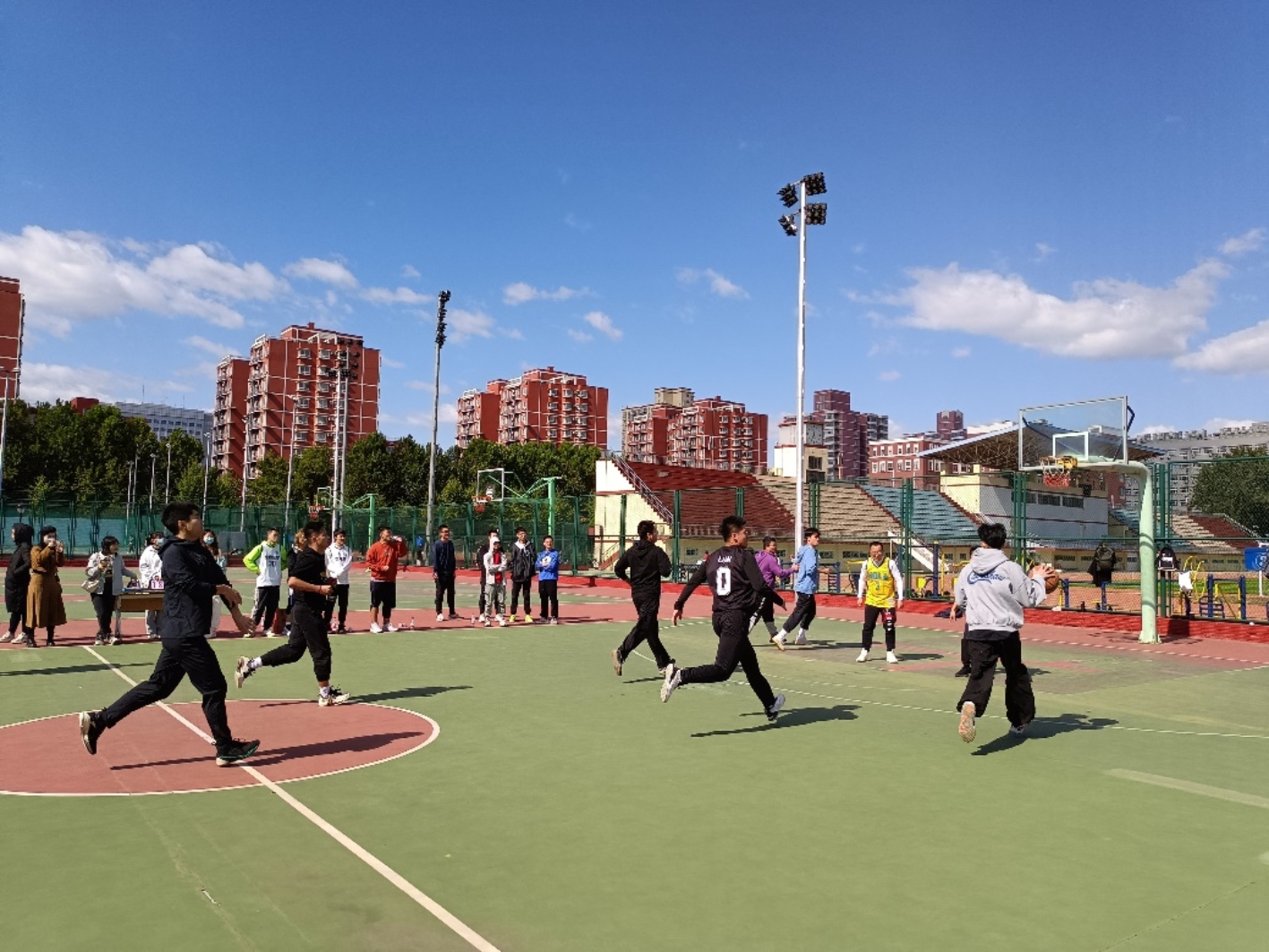2022年10月9日上午,嘟嘟成人网 新老生篮球友谊赛在东操篮球场举行。尽管寒风凛凛,但是参赛队员、工作人员和现场观众们的热情却未因天气而有所消减。在一个多小时的激烈比赛中,新老生队员秉持着“友谊第一、比赛第二”的精神交流球技,为大家带来了一场别开生面的篮球比赛。最终,这场比赛以老生队的胜利落下了帷幕。