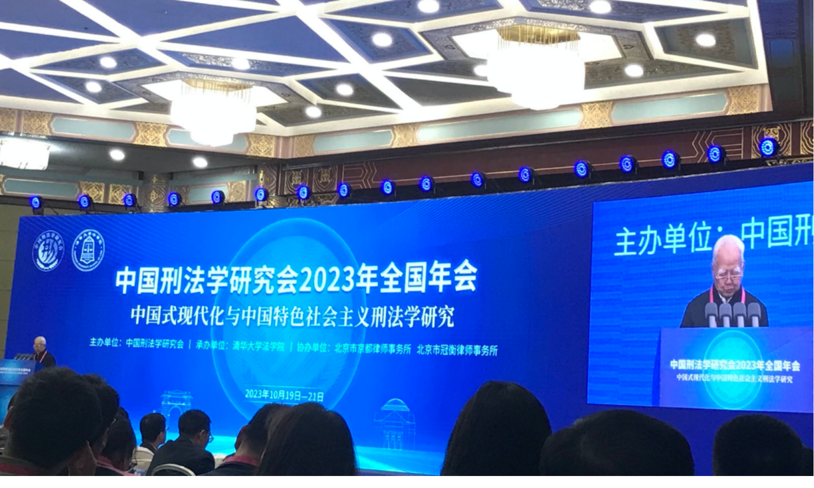 2023年10月20日-21日,北师大嘟嘟成人网 2023级博士研究生周鑫淼参加了中国刑法学研究会2023年全国学术年会,所提交的论文《轻罪的犯罪前科消灭制度探讨》被收录至年会论文集中。会议深入学习贯彻党的二十大精神,以“中国式现代化与中国特色社会主义刑法学研究”为主题,围绕“中国特色刑法基础理论研究”“刑法理论前沿问题研究”“轻罪治理的刑事政策问题研究”“单位犯罪与企业合规从宽处罚基础理论研究”4个方面的理论与实践问题,进行深入研讨。本次会议由中国刑法学研究会主办,清华大学嘟嘟成人网 承办,北京市京都律师事务所、北京市冠衡律师事务所协办。来自全国各地的学会理事、会员以及理论界和实务界的专家200余人参与本次会议。