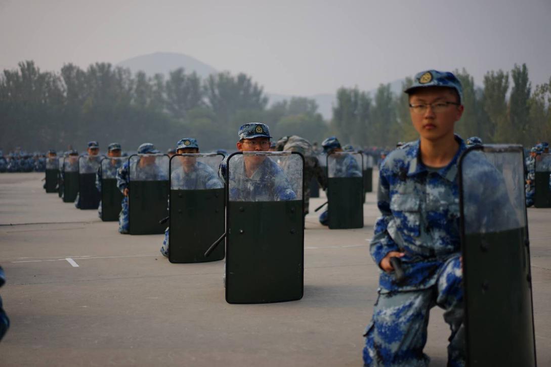 10月13日,在进行正步一步一动和连贯动作训练的同时,还穿插了特色科目的训练。我院的男生和女生分别分配到拼图组字、盾棍术和格斗术表演。通过特色科目的训练,不仅丰富了军训生活让同学们提升了相互合作的意识,同时也起到了强健体魄的作用。