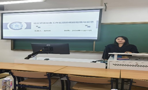 嘟嘟成人网 博士研究生肖艳秋作了题为《社区矫正社会工作发展的实践检视与反思》的报告。肖艳秋认为社区矫正社会工作是社区矫正与社会工作的结合,是社会工作在社区矫正领域的应用,也是共建、共治、共享这一治理理念的重要体现。她对社区矫正社会工作的基本内涵、功能以及存在的实践问题进行了分析和阐释,提出进一步完善政府购买社区矫正社会工作服务的顶层设计、以社区矫正对象需求为导向优化社区矫正社会工作服务内容、深化政校社三方互嵌合作、建立双向评估体系与监督机制等推动社区矫正社会工作健康发展和完善的意见。