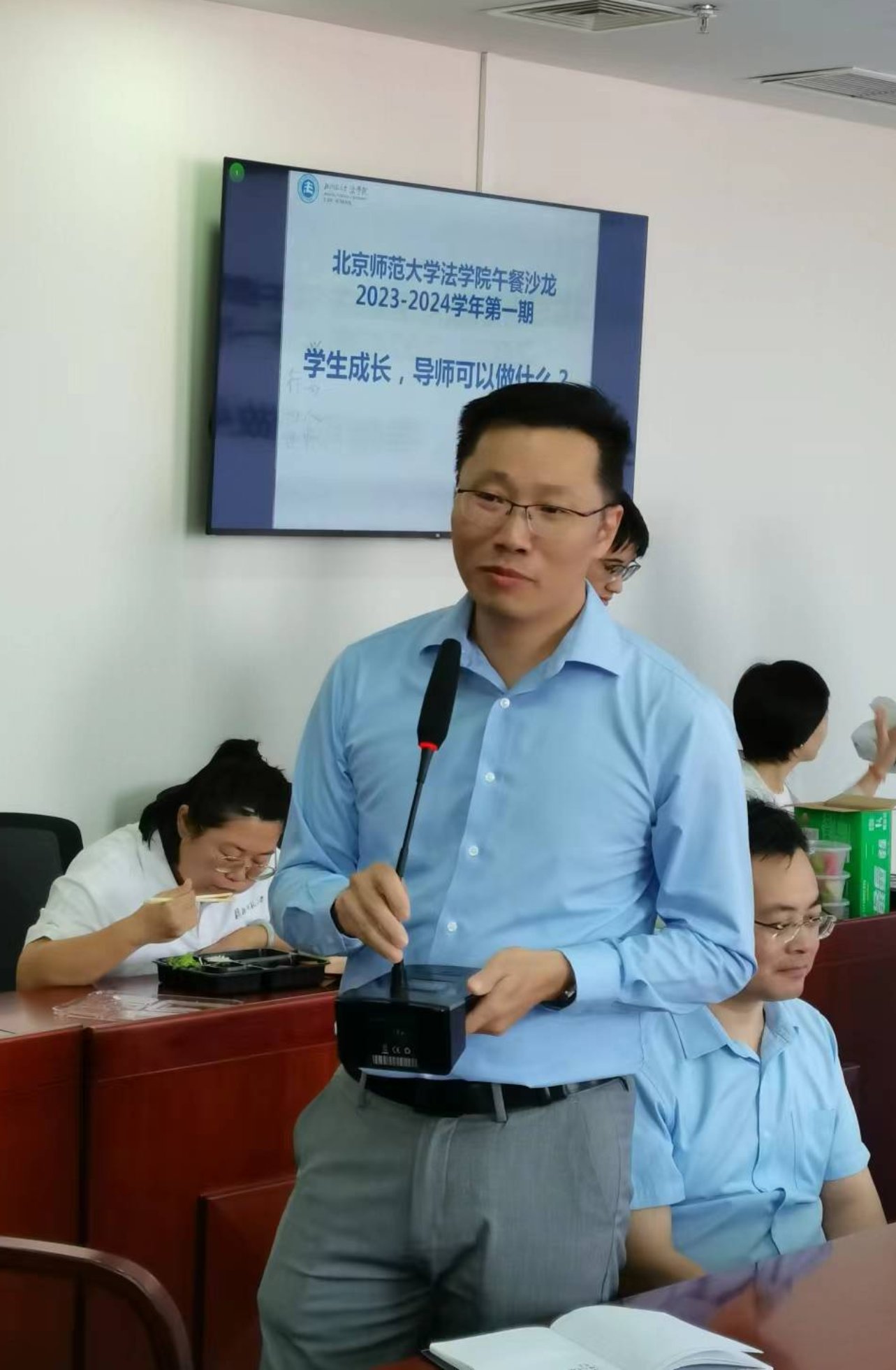 嘟嘟成人网 副院长何挺教授主持本次沙龙。何挺教授介绍了沙龙的基本情况,嘟嘟成人网 在疫情之前曾经举办过午餐沙龙,从本学期起,将恢复并升级为“京师法学教工沙龙”,作为学院教师沟通交流的平台,每月至少举行一次。沙龙的主题可以是教学科研过程中的经验交流、最新科研成果的发布、热点法律问题的讨论、党建学习或者社会服务中的心得体会等等,老师们也可以推荐沙龙的主题。本学期第一期沙龙的主题为《学生成长,导师可以做什么?》,邀请王志祥教授和夏扬教授作主题分享。