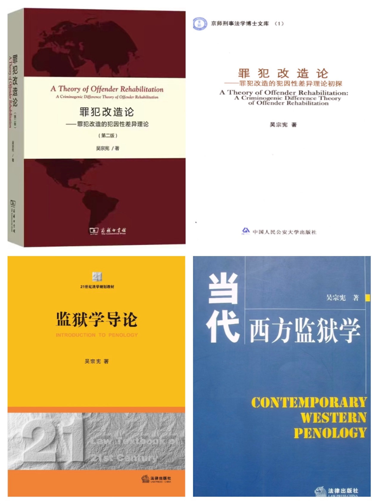 吴宗宪教授的主要研究领域包括犯罪学、监狱学、社区矫正和犯罪心理学,他是我国重要的资深监狱学研究者之一。从1984年在中国政法大学研究生院读二年级时修读“劳改法”(即后来的监狱学)课程、聆听原抚顺战犯管理所所长金源先生和原国民党战犯尚传道先生的讲座、参加大学生演讲团到山东的监狱和劳教所给犯人和劳教人员演讲开始,正式与监狱学结缘,40多年来,在监狱学领域深耕细作,进行了多方面的大量的工作。在研究方面,出版了种类较多的著作。其中,既有专门论述国外监狱学内容的《当代西方监狱学》(法律出版社2025年),也有全面阐述监狱学内容的《监狱学导论》(法律出版社2012年),以及侧重应用性研究的《中国现代化文明监狱研究》(主编,警官教育出版社1996年)和《我国监狱法修订研究》(主编,中国社会出版社2021年);既有系统论述国外罪犯心理矫治的《国外罪犯心理矫治》(中国轻工业出版社2004年),也有论述我国罪犯心理矫治的《中国服刑人员心理矫治》(主编,法律出版社2004年)和《中国服刑人员心理矫治技术》(主编,嘟嘟成人网 出版社2010年);还有专门论述罪犯改造理论的专著《罪犯改造论——罪犯改造的犯因性差异理论初探》(中国人民公安大学出版社2007年)和《罪犯改造论——罪犯改造的犯因性差异理论》(第二版,商务印书馆2019年)等。这些研究成果较为深入地探讨了监狱领域的相关内容,给学术研究和实务工作提供了很多参考信息和一些思考建议。