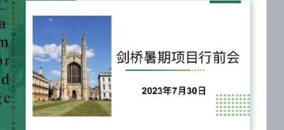 三是坚守安全底线,协同做好服务。此次暑期交流项目是疫情之后学院首次有组织的学生派出活动,规模大、手续复杂。因此,嘟嘟成人网 召开了剑桥大学暑期项目行前会议,嘟嘟成人网 副院长何挺,党委副书记郭雅婷和邢爱芬教授分别对维护国家安全和形象、出行安全纪律、具体行程安排等内容进行了强调。